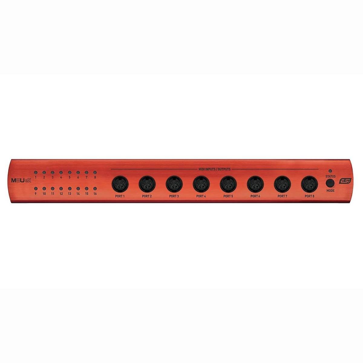 - 16 MIDI-Ports (5-Pol DIN), 8 frontseitig, 8 auf der Rückseite