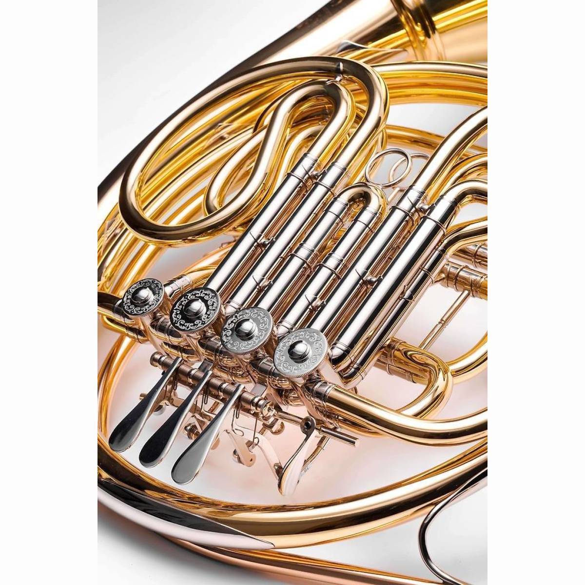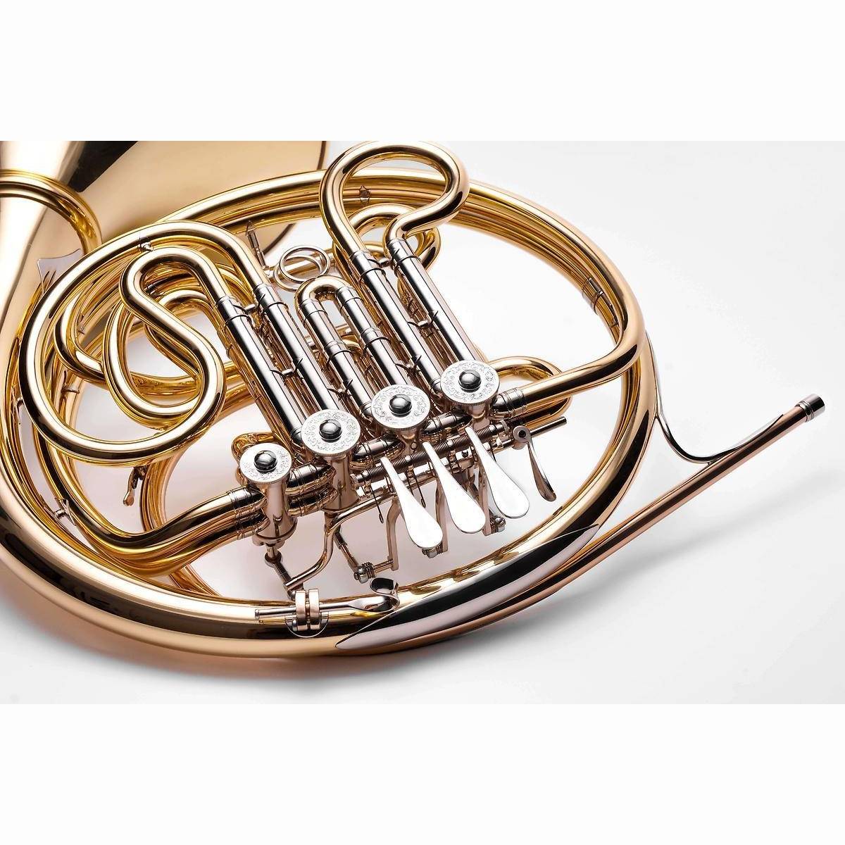 Direkt an den Originalinstrumenten von "Carl Geyer", welcher 1903 in die USA auswanderte, orientiert sich das Hans Hoyer Horn Modell G10. Das Design bietet eine bestens ausgewogene Geometrie und ähnelt ganz besonders im Klangfarbenreichtum und Spielgefühl den Originalen aus den 50er Jahren. Um dies zu erreichen, wurde genauestens auf die Positionierung der Stützen wie auch auf die ergonomische Anordnung der Ventil- und Daumendrücker geachtet.