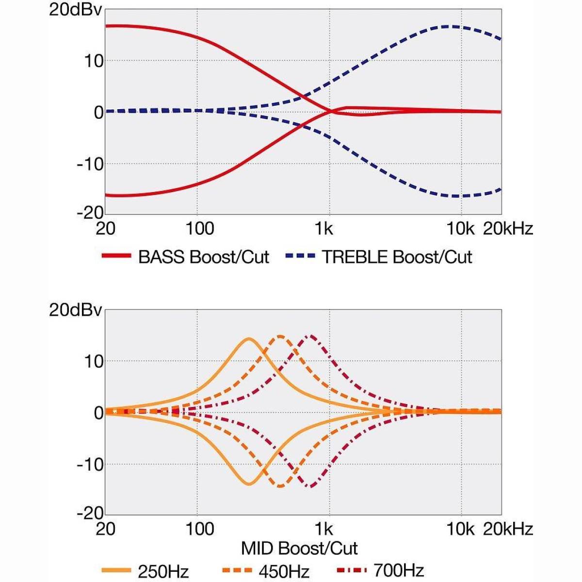 - Weitere Schaltungen EQ Bypass Schalter (passive Klangkontrolle am Höhenregler), Dreiwege Mittenfrequenzschalter