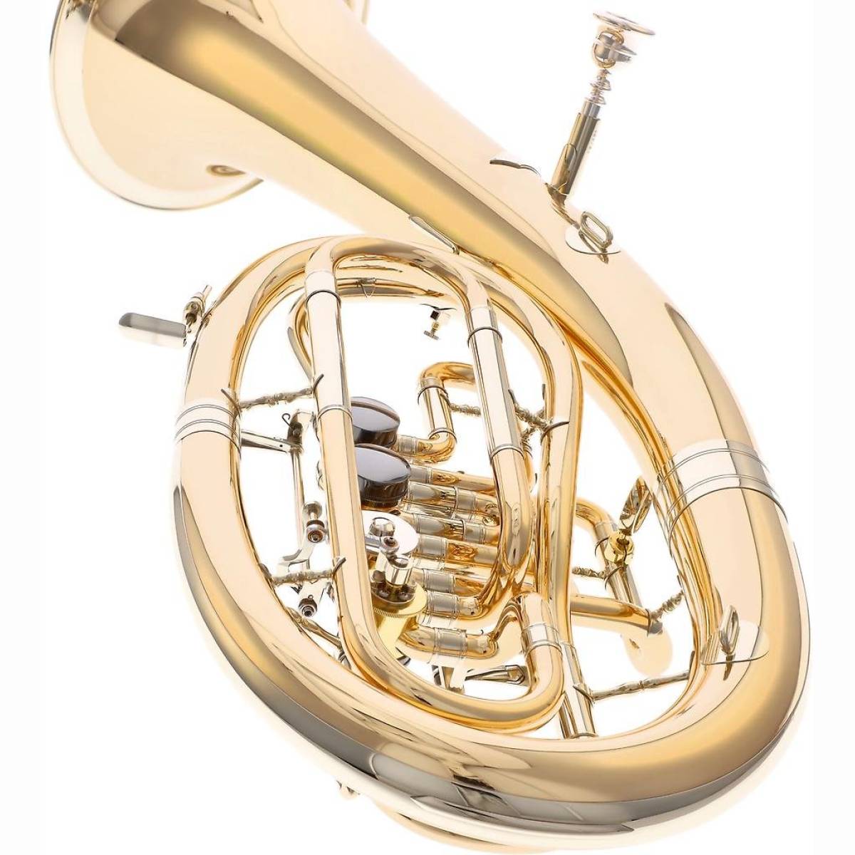 Das neue Melton Tenorhorn "Universal" ist komplett in Goldmessing gefertigt und verfügt über eine konische Bohrung, einen freiliegenden Anstoß und einen praktisch und ergonomisch nach oben geführten 3. Ventilzug. Das 4. Ventil ist bequem mit dem linken Zeigefinger zu greifen.