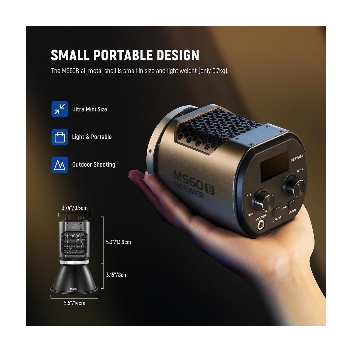- Aluminiumgehäuse, mit Bowens Adapter